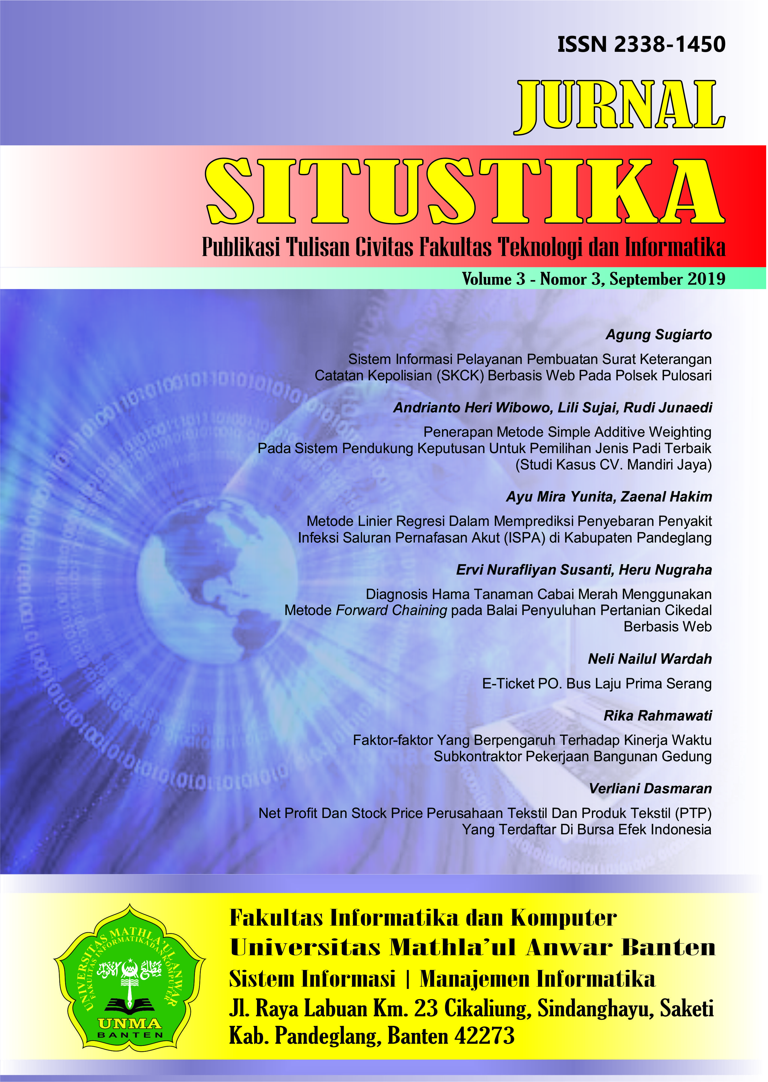 ![]() | SITUSTIKA No. 3 Vol. 3 - SEPTEMBER 2019 ISSN : 2338-1450 ![]() | |